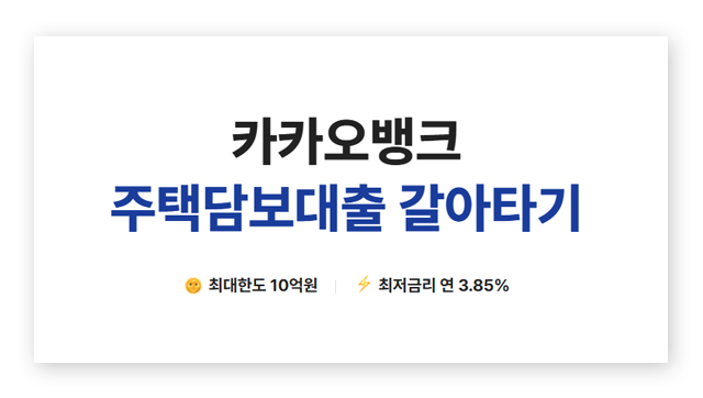 주택담보대출 갈아타기는 기존에 다른 금융기관에서 받은 주택담보대출을 카카오뱅크의 대출로 전환하여 더 유리한 조건으로 이용하는 것을 말합니다.