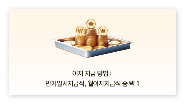 - 만기일시지급식: 만기(후) 해지 시 이자를 지급