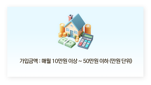 - 가입 금액: 매월 10만 원 ~ 50만 원 (1만 원 단위)