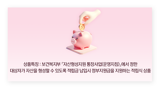 청년내일저축계좌는 보건복지부의 자산형성지원 통장사업(운영지침)에 따라 적립금 납입 시 정부지원금을 통해 자산 형성을 돕는 자유적립식 상품입니다.