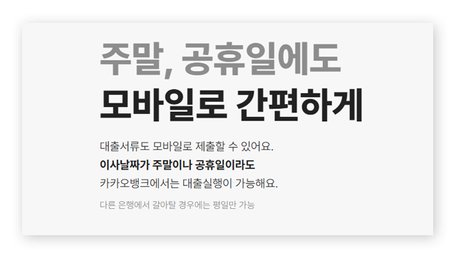 - 주말/공휴일에도 대출 실행 가능 (타 은행 갈아타기는 평일만 가능)