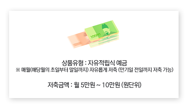 - 저축금액: 월 5만 원 ~ 10만 원