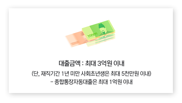 - 최대 3억 원 (재직기간 1년 미만 사회초년생은 최대 5천만 원).