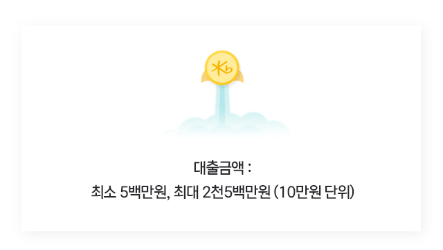 • 대출한도: 최소 500만 원 ~ 최대 2,500만 원 (10만 원 단위)