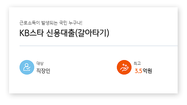 대출이 필요한 상황에서 새로운 대출을 고려하고 계신다면, 기존 대출을 상환하고 금리 혜택을 받을 수 있는 KB 스타신용대출(갈아타기)를 추천드립니다.
