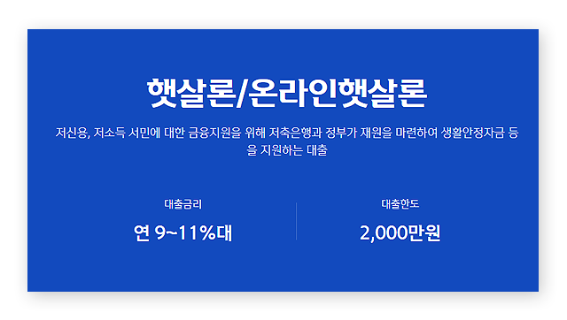 - 온라인햇살론 신청 시: 금리 0.5%p 인하