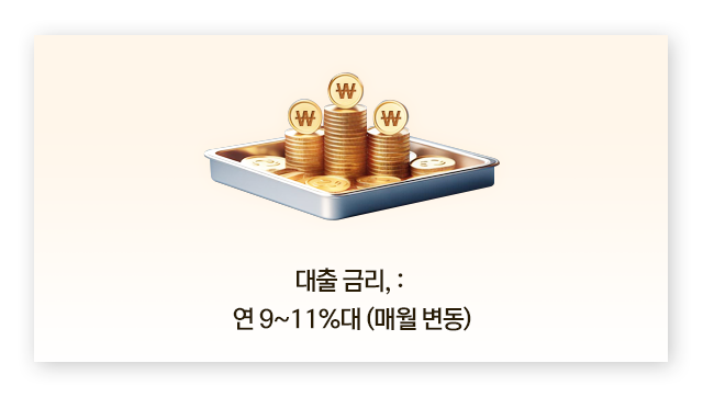 연 9~11%대 (금감원 상한금리 이내 자율 결정)